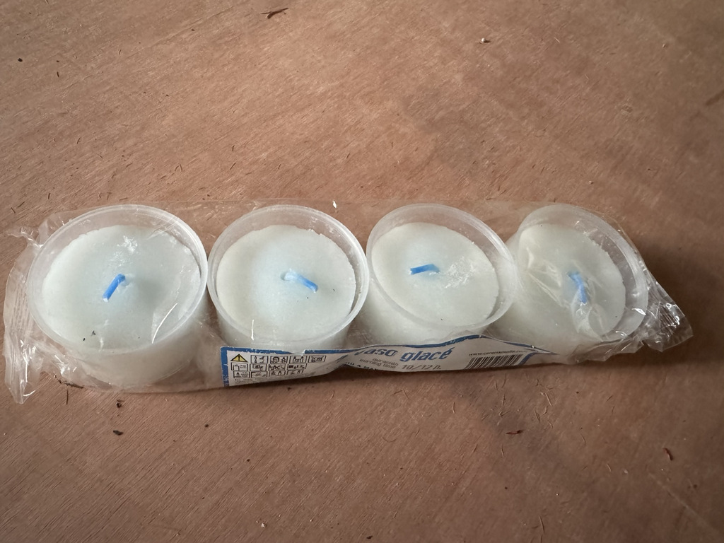 Lot de 10 grands photophores en cire , de la marque Cereria Molla : Lot de 20 petits photophores en cire, de la marque Cereria Molla , assortis aux grands : 30 recharges de 4 bougies à placer à l'intérieur : lot global 120 bougies