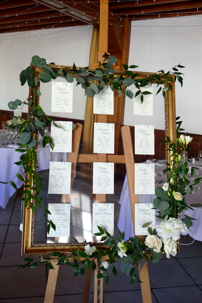Le cadre est percé de manière à pouvoir solidariser des guirlandes de fleurs , les attaches au verso sont aussi prévues
