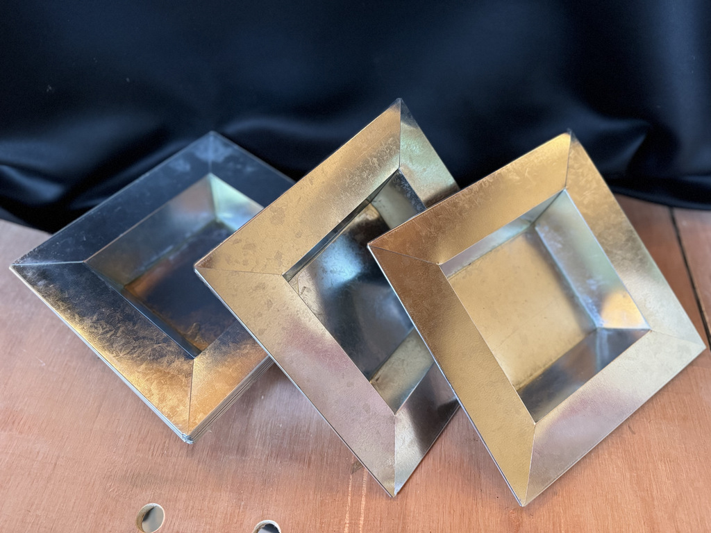 Lot composé de : 8 contenants rectangles modernes , longueur extérieure : 26 cm, côté intérieur : 15,5 cm, hauteur : 5 cm 6 contenants ovales décorés, longueur : 18 cm, largeur : 10 cm, hauteur: 9 cm