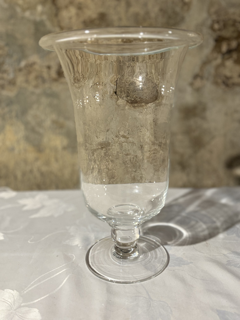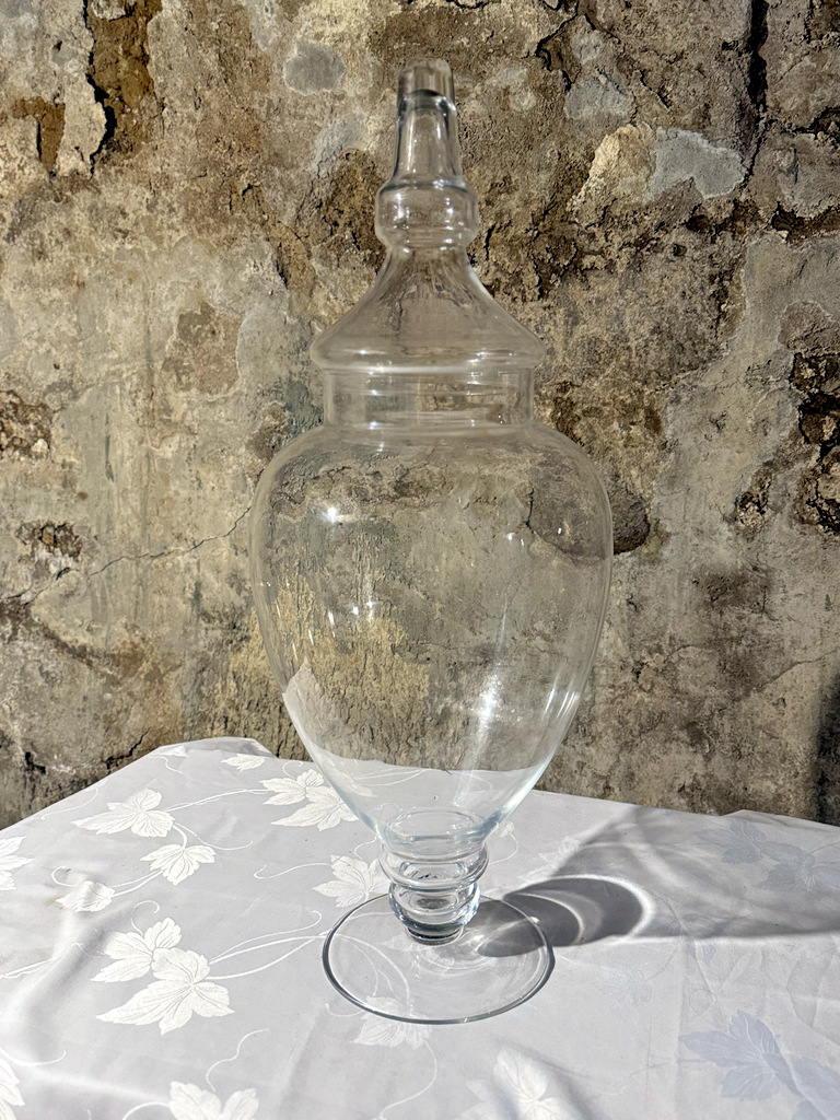 2 grands vases Médicis en verre, magnifiques , grands décors hauteur : 38 cm diamètre pied : 15 cm diamètre haut : 20 cm beaucoup d'allure , alliant transparence, et élégance