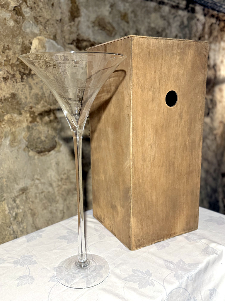 Lot de 10 coupes Marini en verre, hauteur 70 cm, vendues avec caisses de transport individuelles, en contreplaqué et mousse. Très bon état