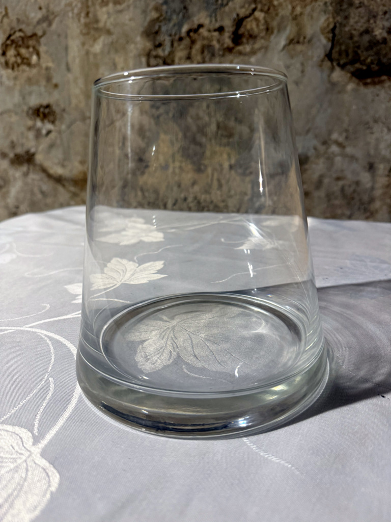 7 vases cylindriques coniques pouvant servir soit de vases soit de photophores grosses bougies. Très bon état.