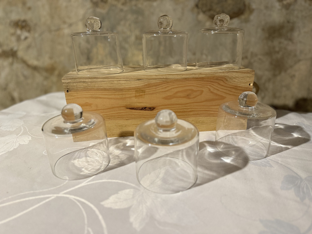 6 Grandes cloches en verre avec cabochon doré Idéales pour un travail de fleurs fraîches ou fleurs séchées, pour un centre de table ou une décoration d'intérieur.